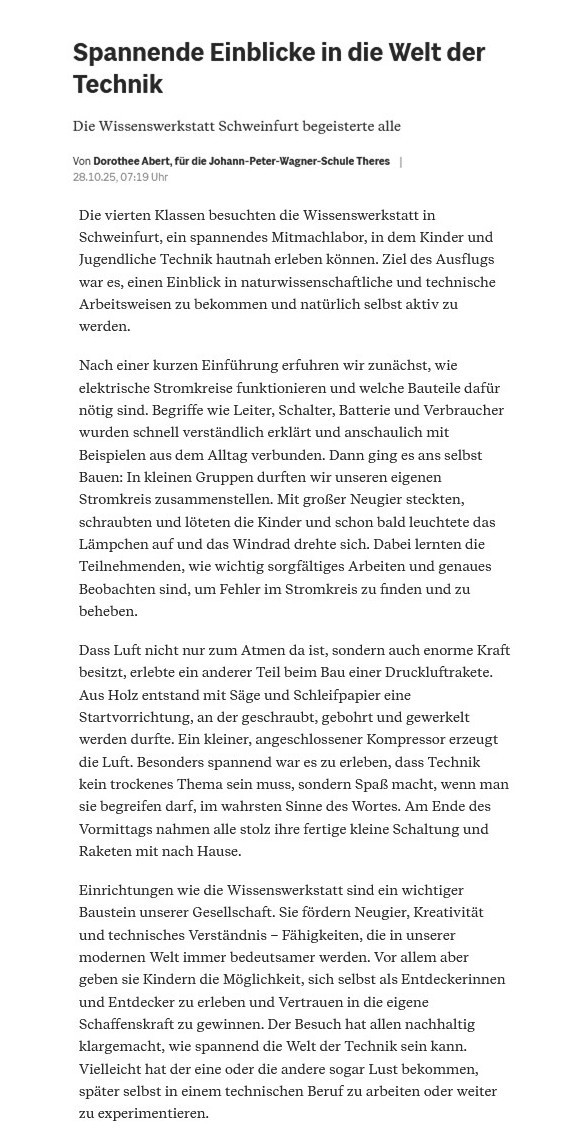 Bilder und Text in der Mainpost von Dorothee Abert, für die Johann-Peter-Wagner-Schule Theres